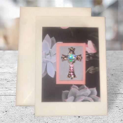 Cream Cardstock with paper and applique. Blank inside.