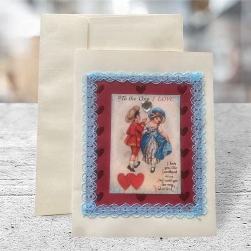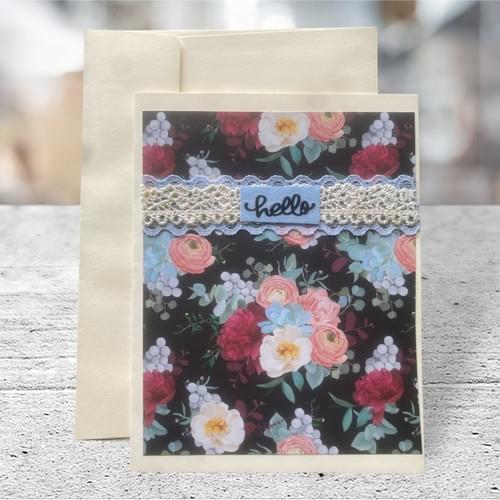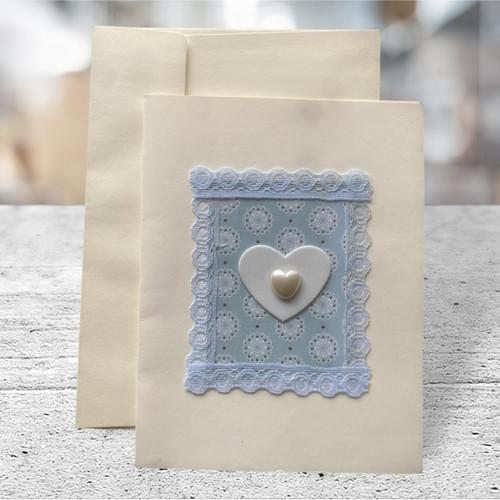 Set of 3. Cream cardstock with paper and lace. Blank inside.
