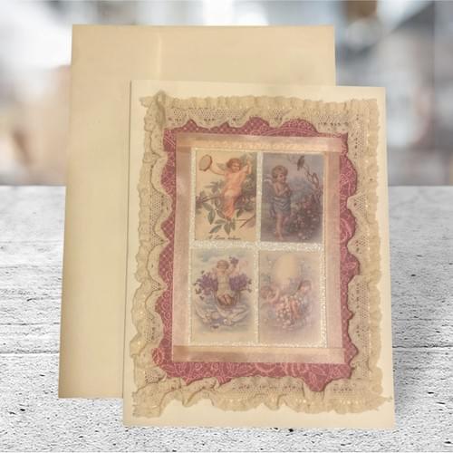 Ser of 2. Cream cardstock with paper and lace. Blank inside.