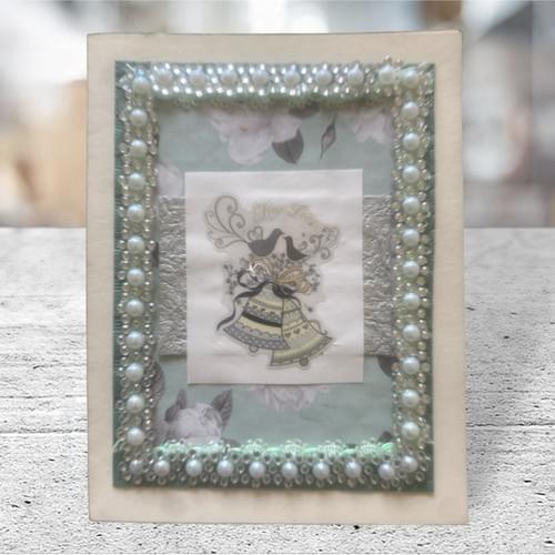 Cream cardstock with paper and pearl trim. Blank inside.